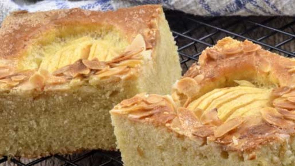 5. Vatkaa valkuaiset kovaksi vaahdoksi, kääntele massaan ja levitä omenoille. Paista uunissa n. 20 minuuttia.