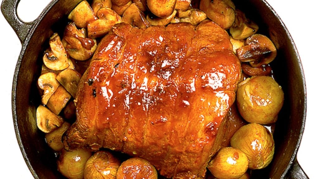 2. Laita paisti pataan ja pistä siihen paistilämpömittari. Keitä paistia kannen alla aika miedolla lämmöllä kunnes sisälämpötila on 70 astetta, n. 1 tunti. Silloin paisti on sisältä vielä vaaleanpunainen. Jos haluat paistista läpikypsän, sisälämpötilan tulee olla 75 astetta.