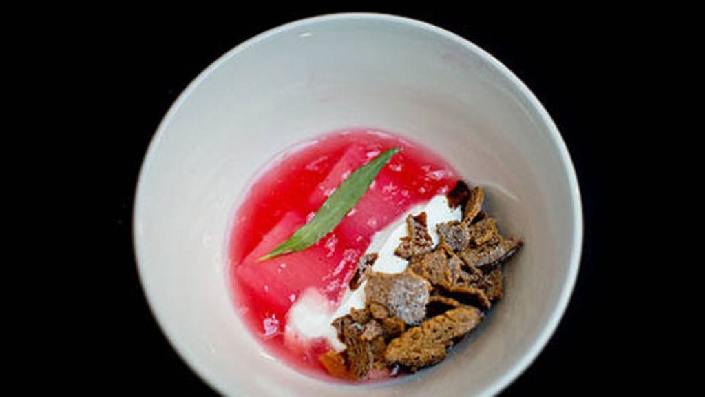 Kaada liemi raparperinpalojen päälle ja anna hyytyä jääkaapissa.