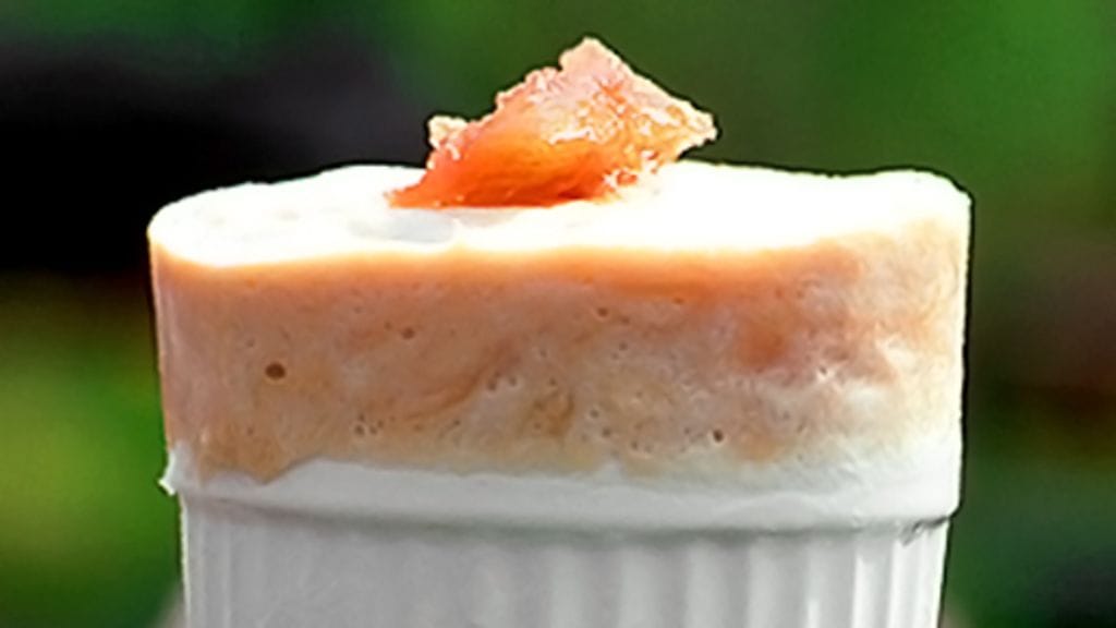2. Laita liivatteet likoamaan kylmään veteen muutamaksi minuutiksi. Sulata ne kuumassa raparperimassassa. Anna massan jäähtyä.