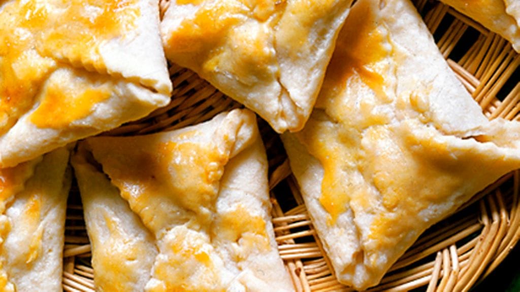 2 Kauli taikina, leikkaa 8-10 sentin neliöiksi.