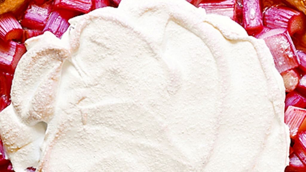 2. Kuumenna uuni 225 asteeseen. Kauli taikina ja vuoraa sillä piirasvuoka. Pistele pohja. Kaada raparperisilppu pohjalle ja sokeroi. Paista uunin keskitasolla 20 minuuttia.