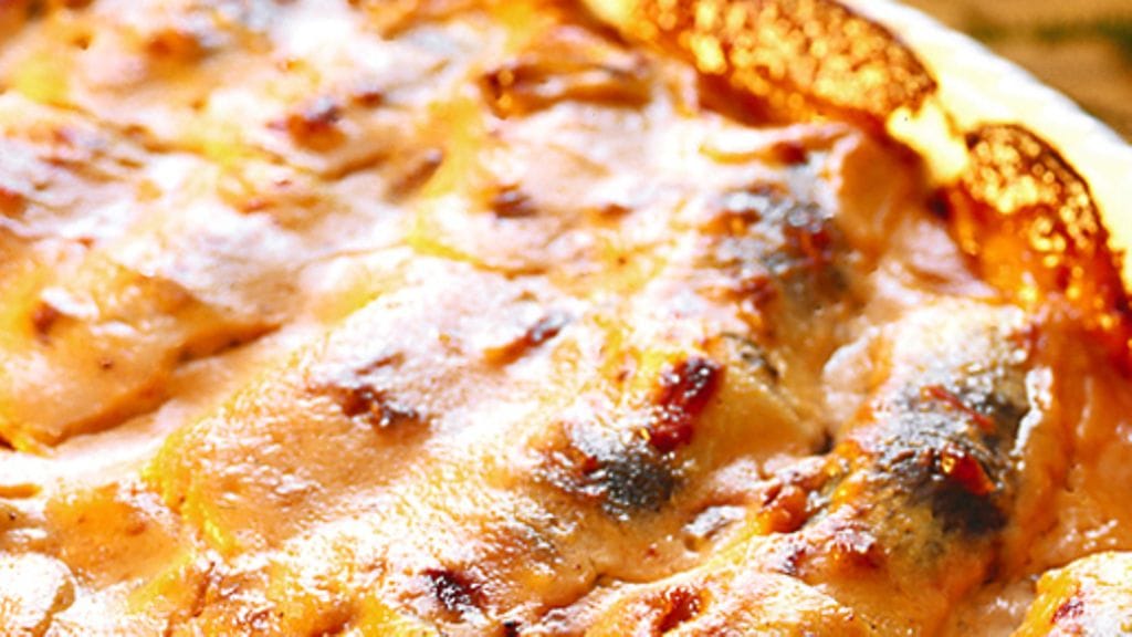 3. Peitä vuoka foliolla ja laita uunin alatasolle n. 15 minuutiksi. Siirrä vuoka uunin keskitasolle ja kypsennä valmiiksi ilman foliota n. 10 minuuttia.