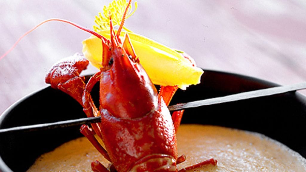 3. Sekoita jauhot tilkkaan kermaa. Vatkaa suurus ja loput kermasta mukaan liemeen ja keitä muutama minuutti. Lisää ravunpyrstöt juuri ennen tarjoilua ja kuumenna, mutta älä enää keitä. Tarjoile lämpimiltä lautasilta, koristele kokonaisilla ravuilla.