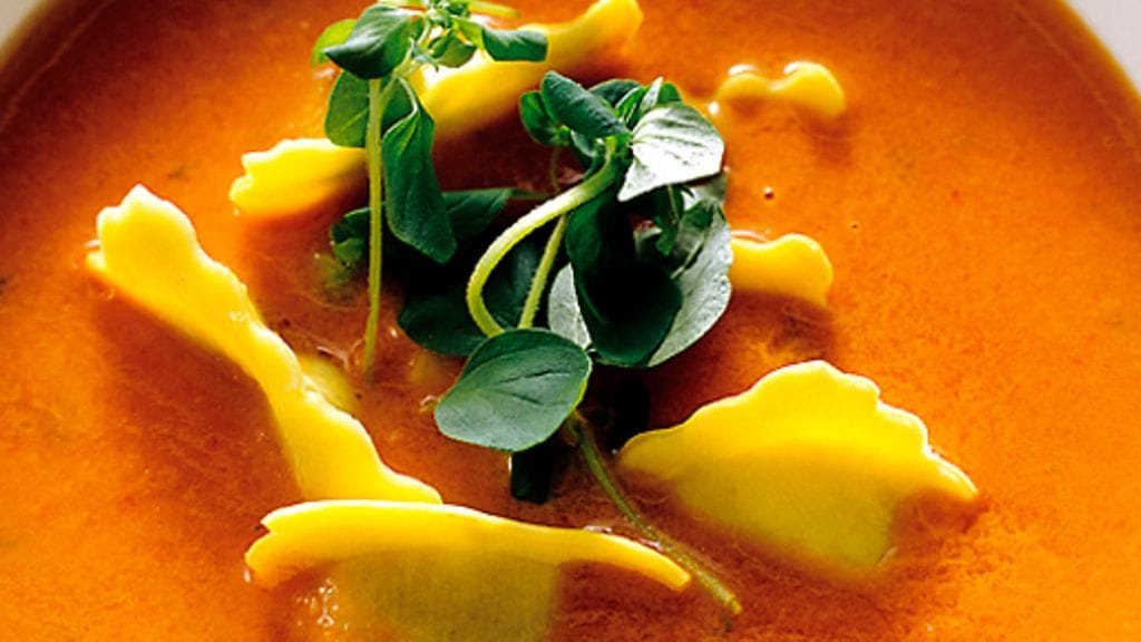 3. Lisää raviolit keittoon ja keitä pehmeiksi. Mausta hienonnetulla oreganolla sekä suolalla ja pippurilla.