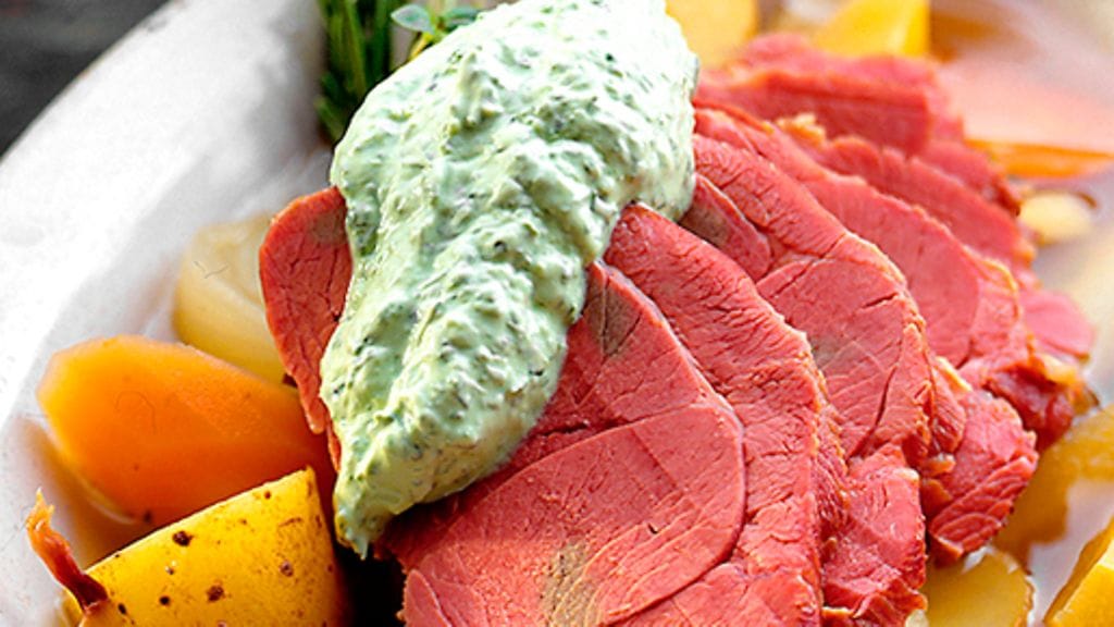2. Nosta lihakäärö kattilaan, lisää pippurit ja kaada päälle sen verran vettä, että liha peittyy. Kuumenna kiehuvaksi ja kiehuta hiljalleen poreillen 1 1/4 - 1 ½ tuntia, tai kunnes lihan sisälämpötila on 77 astetta. Nosta liha liemestä ja anna jäähtyä jonkin aikaa ennen tarjoilua.