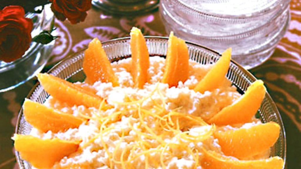 4. Voit myös koristella riisin hienosti suikaloidulla, nopeasti ryöpätyllä appelsiininkuorella.