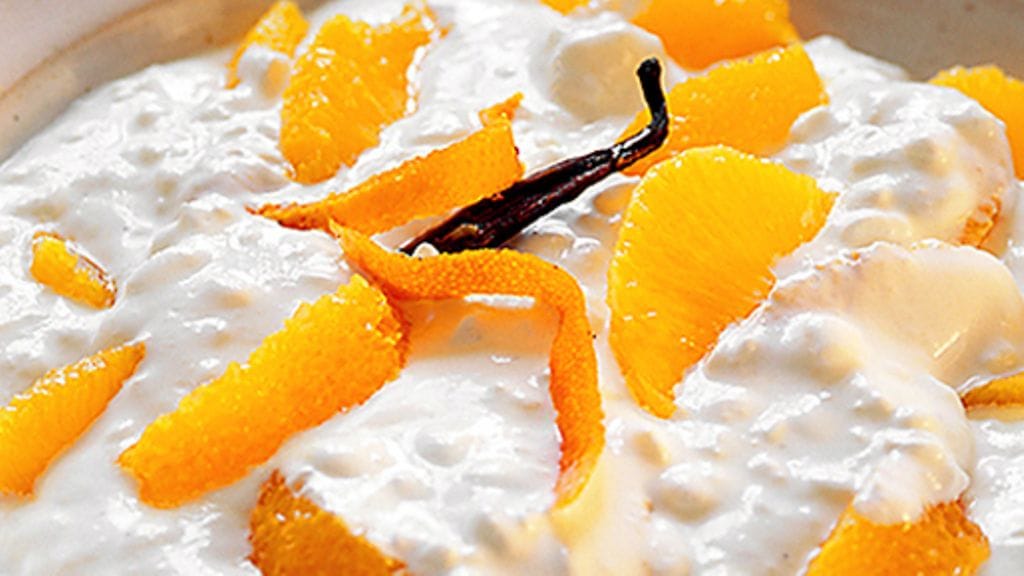 3. Sekoita kermavaahto, vaniljansiemenet, kardemumma ja sokeri raejuustoseokseen. Laita kulho kylmään. Koristele appelsiinifileillä ennen tarjoilua.