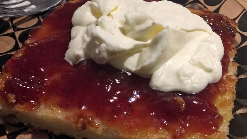 5. Paista pannukakkua 225-asteisessa uunissa noin 30 minuuttia. Tarjoile hillon ja kermavaahdon kanssa.