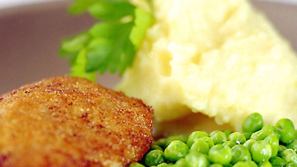 2. Muotoile mureketaikinasta neljä suurta pihviä, korkeintaan sentin paksuisia ja kääntele ne juurijauhetuissa vaaleissa korppujauhoissa. Paista wallenbergiläiset miedolla lämmöllä 3 minuuttia kummaltakin puolelta. Pihvien kuuluu olla vaalean kullanruskeita pinnalta ja kuohkeita sisältä.