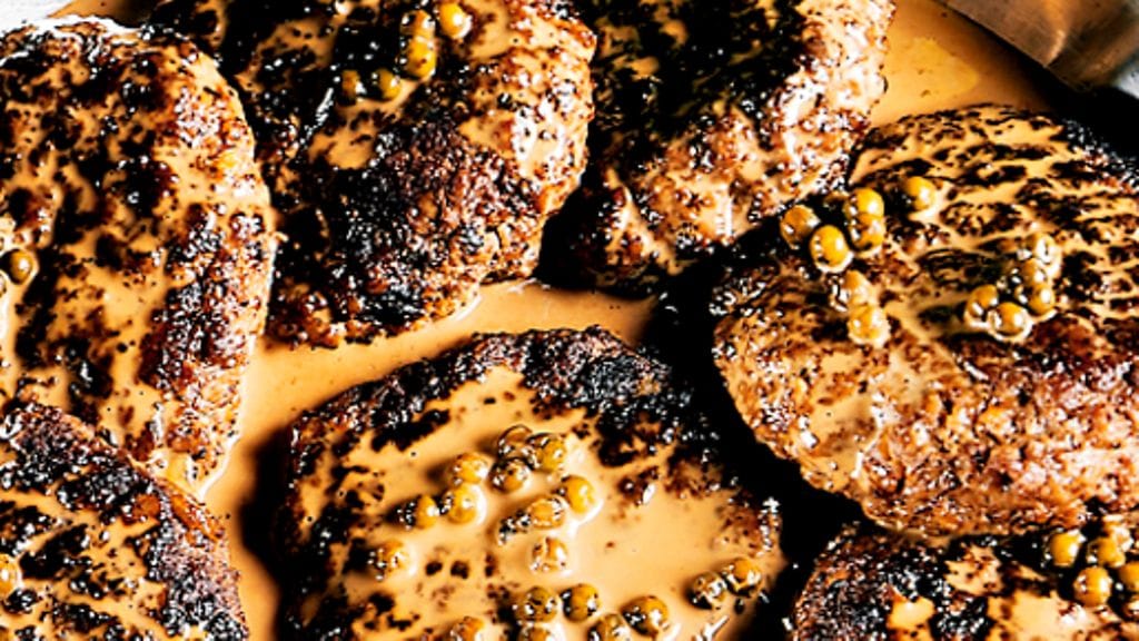 3. Vispaa pannu lihaliemellä ja siivilöi liemi kasariin. Lisää kerma ja keitä kokoon. Keitä viherpippureita mukana 5 minuuttia. Mausta ja tarjoile kastike pihvien kera.