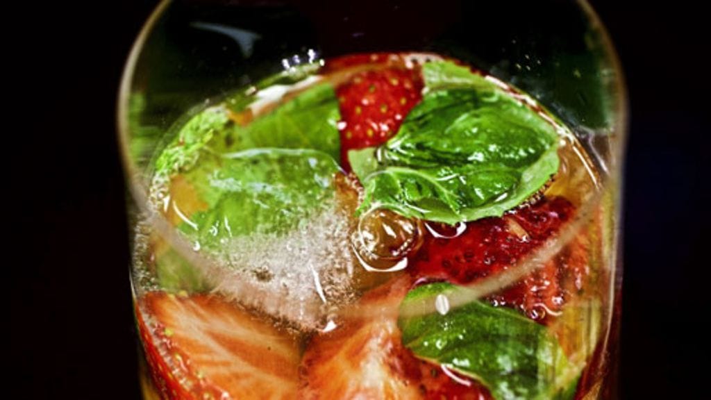 Kaada juomat riittävän isoon boolimaljaan. Lisää appelsiinit, mansikat, sitruunamehu ja jäät. Viimeistele mintunlehdillä.