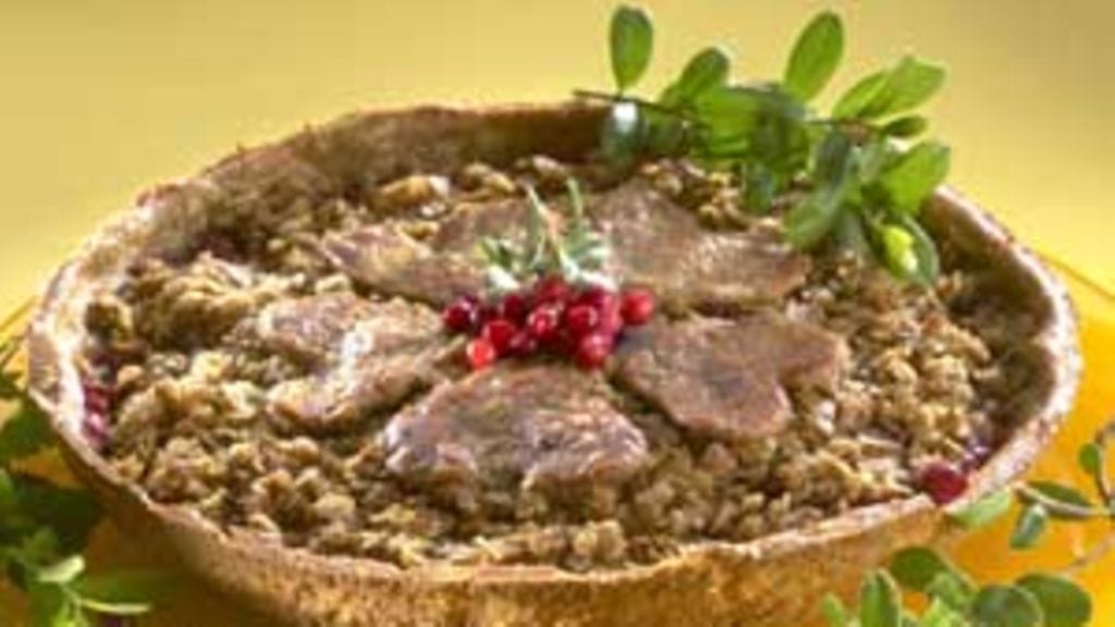 Sekoita sulatettuun rasvaan sokeri ja ruishiutaleet ja ripottele muruseos puolukoiden päälle. Paista 200 asteisen uunin alatasolla noin 30 min.