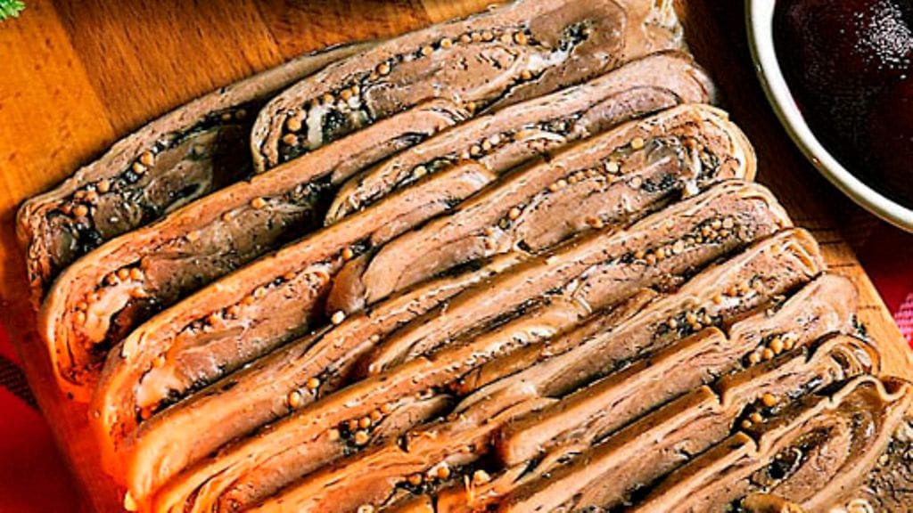 4. Leikkaa pois talousnaru. Viipaloi syltty ohuesti, tarjoile punajuurien ja säilykekurkun kera.