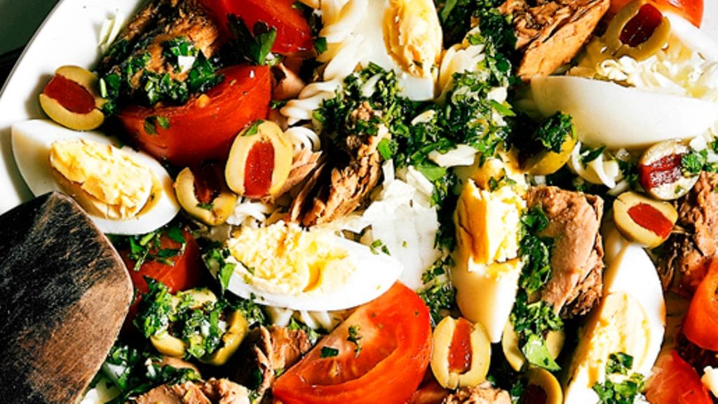 Tämä on ihanteellinen salaatti lounasrasiaan. Pysyt kylläisenä pitkään pastan ansiosta.