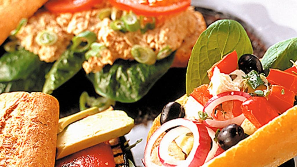 1. Tonnikalasämpylät: Hienonna tonnikalapurkin sisältö, lisää majoneesi ja kermaviili ja mausta suolalla, pippurilla sekä currylla. Asettele sämpylöille sipulia tai purjoa sekä salaatinlehtiä ja tomaattiviipaleita. Levitä täyte.