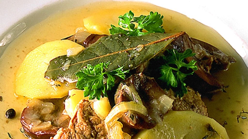 2. Kuori ja viipaloi perunat ja sipulit. Lado uuninkestävään pataan pari kerrosta perunoita, sitten fileitä, munuaista, sipulia ja niin edelleen muutamaan kertaan. Mausta suolalla ja pippurilla kerrosten välissä.