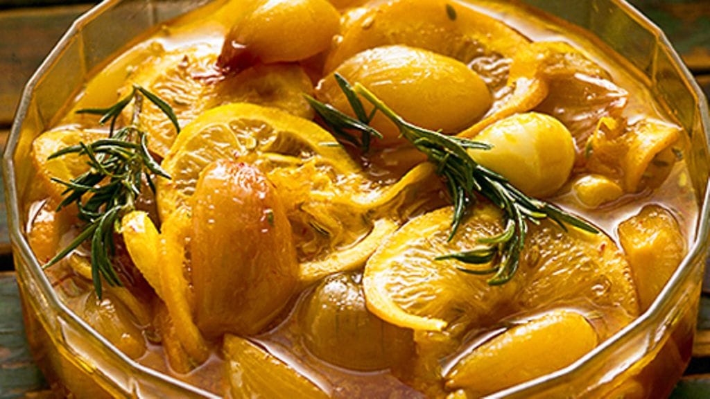 1. Kuori sipulit. Paista ne öljyssä ilman, että ne saavat väriä. Pese appelsiini ja sitruuna, suikaloi kuoret ja purista mehut. Lisää appelsiinimehu, sitruunamehu ja sahrami pannuun, laita kansi päälle ja anna sipuleiden hautua miedolla lämmöllä, kunnes ne alkavat pehmetä. Sekoittele muutaman kerran.