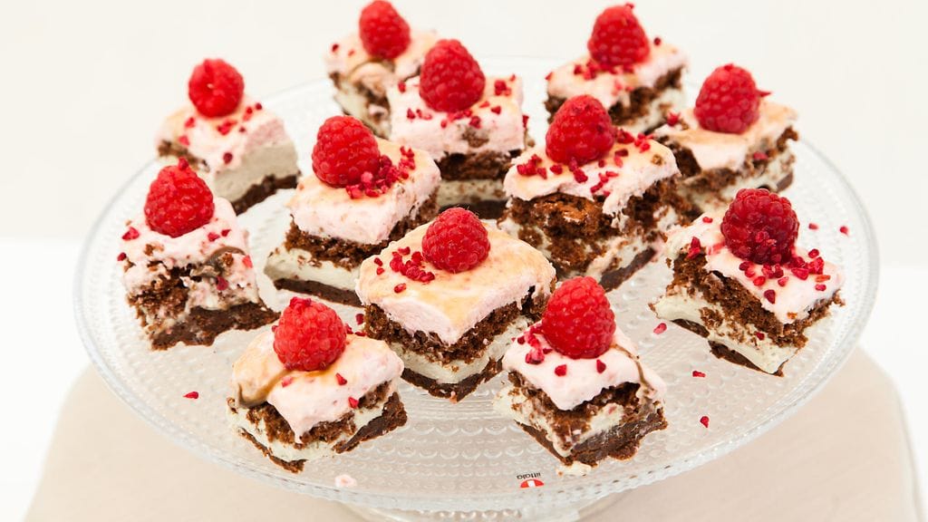 Sulata voi ja suklaa kattilassa. Jäähdytä voisuklaaseos. Vatkaa munat ja sokeri kuohkeaksi. Lisää keskenään sekoitetut kuivat aineet munasokeriseokseen. Lisää voisuklaaseos. Levitä taikina kahteen korkeareunaiseen uunipeltiin, jotka on vuorattu leivinpaperilla. Ripottele pinnalle hasselpähkinärouhe.
