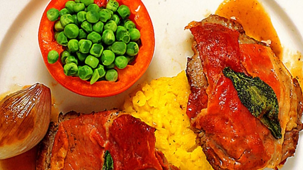 1. Nuiji vasikanfileet nyrkillä tai lihanuijalla. Pane jokaisen fileen päälle kinkkuviipale ja salvianlehti ja kiinnitä cocktailtikulla. Mausta suolalla ja pippurilla.