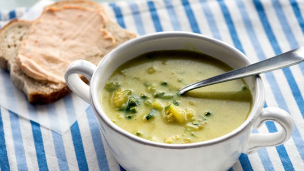 Lisää vesi, liemikuutiot ja perunasosejauhe tai perunasose.