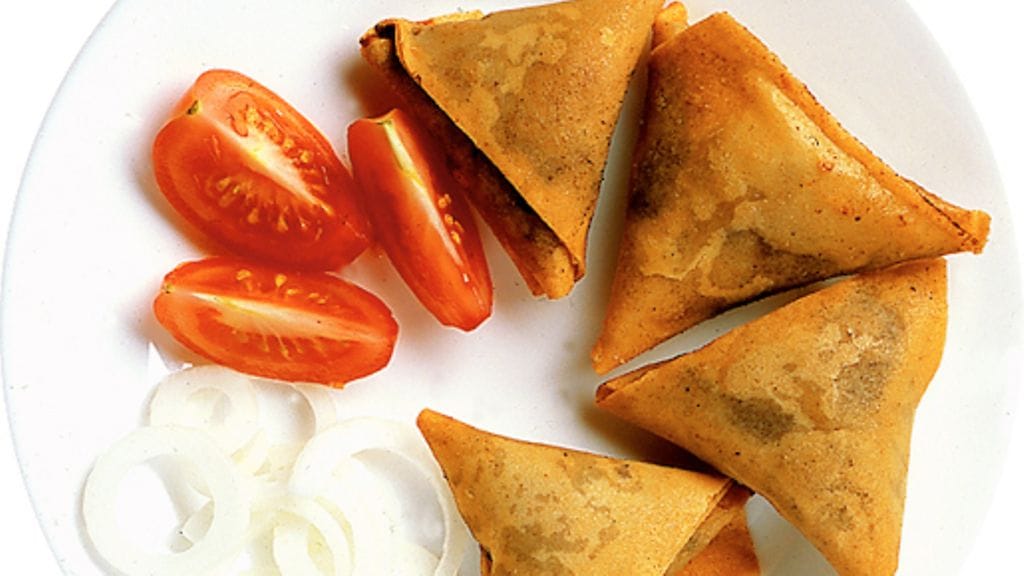 1. Täyte: Kuori ja hienonna sipuli. Kuori ja raasta inkivääri. Halkaise chilipalko pituussuuntaan, poista siemenet ja leikkaa ohuiksi suikaleiksi. Hienonna korianteri. Sekoita inkivääri ja chili jauhelihaan. Siirrä jauheliha kattilaan ja lisää joukkoon suola, herneet ja runsas desilitra vettä. Keitä kohtalaisella lämmöllä koko ajan sekoittaen noin 10 minuuttia, kunnes liha on kuivaa ja murumaista. Jätä jauhelihaseos jäähtymään ja lisää lopuksi sipuli ja korianteri.