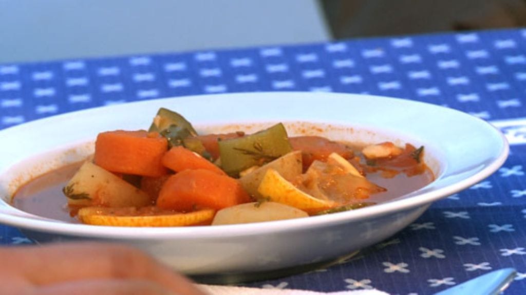 Kaksi sipulia ja puolikas selleri kuoritaan ja pilkotaan. Isoon keittokattilaan laitetaan 40g voita, jonne sekoitetaan pilkotut sipuli ja selleri. Kaksi porkkanaa kuoritaan ja pilkotaan reiluiksi paloiksi ja lisätään kattilaan. Lisätään myös pieni pala inkivääriä.