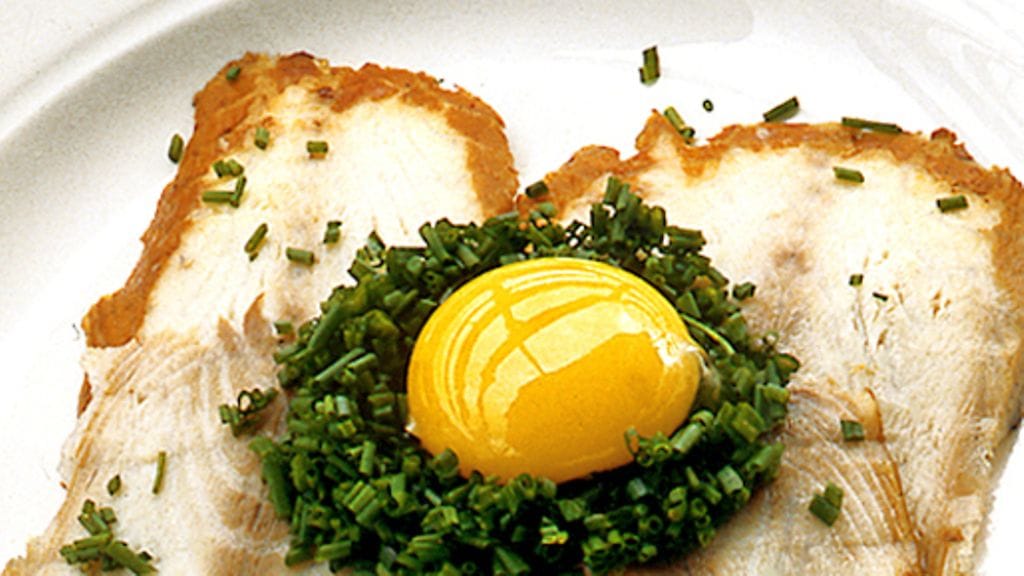 3. Tee syvennys ruohosipulisilpun keskelle ja liu'uta keltuainen varovasti siihen. Tai tarjoile keltuaiset erikseen pienistä kupeista.
