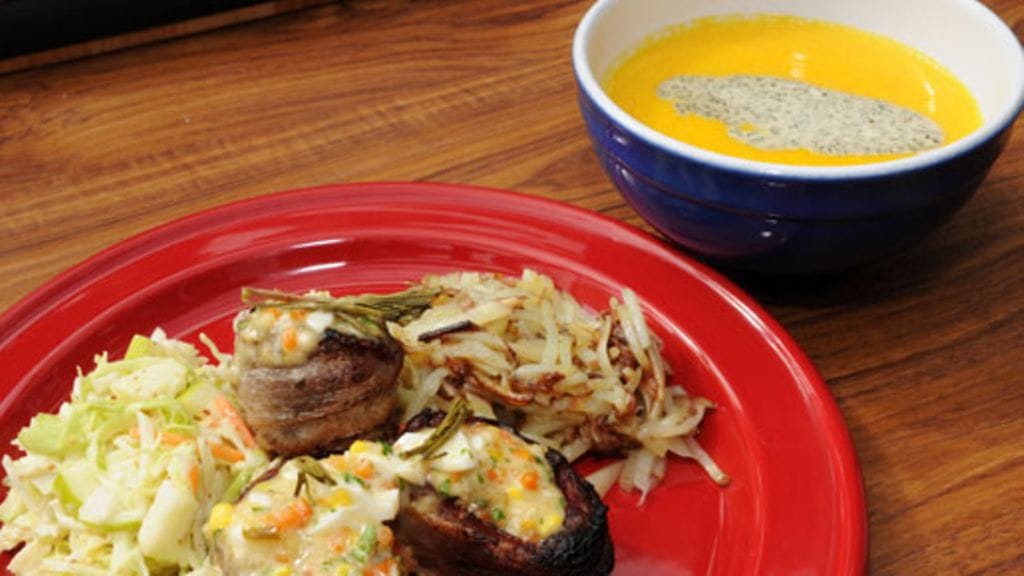 Noisetit: Poista lihasta kalvot ja leikkaa filee tasakokoisiksi pihveiksi niin, että jokaiselle ruokailijalle tulee kaksi pientä pihviä. Muotoile ne parin kolmen sentin paksuisiksi ja kietaise pekoniviipale niihin vyöksi. Mausta ja anna maustua tovi. Sivele lihojen pintaan öljyä ja grillaa noisetit kuumalla grillillä melkein kypsiksi. Anna vetäytyä hetki ennen tarjoilua.