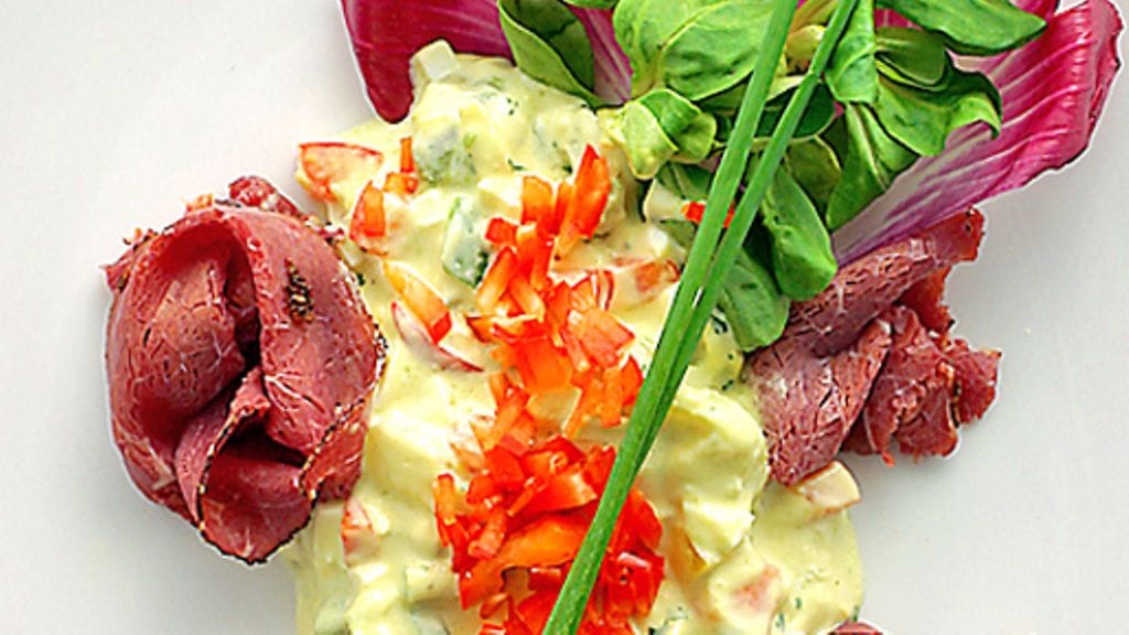 1. Vinaigrette: Sekoita suola, pippuri ja viinietikka. Vatkaa mukaan sinappi, ja sitten öljy, vähän kerrallaan. Laita kylmään.