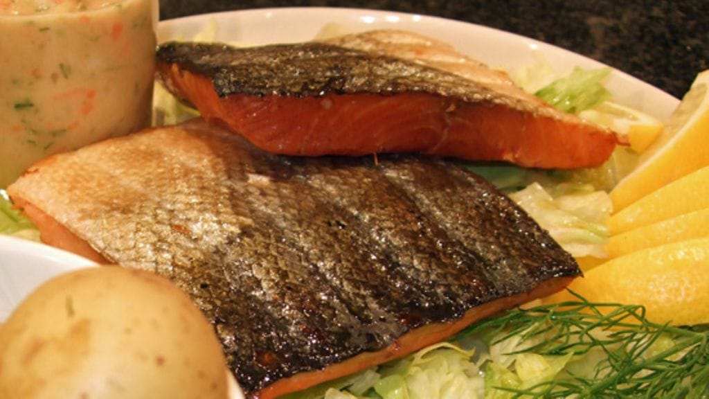 Lämmitä savulohi uunissa ja keitä perunat tillillä ja suolalla maustetussa vedessä.