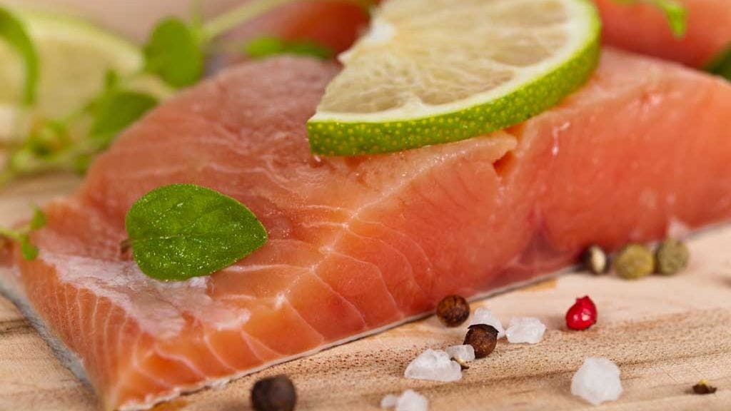 2. Säilytä lohi viileässä tarjoiluun saakka. Irrota nahka ja pane kala tarjolle isolle vadille.