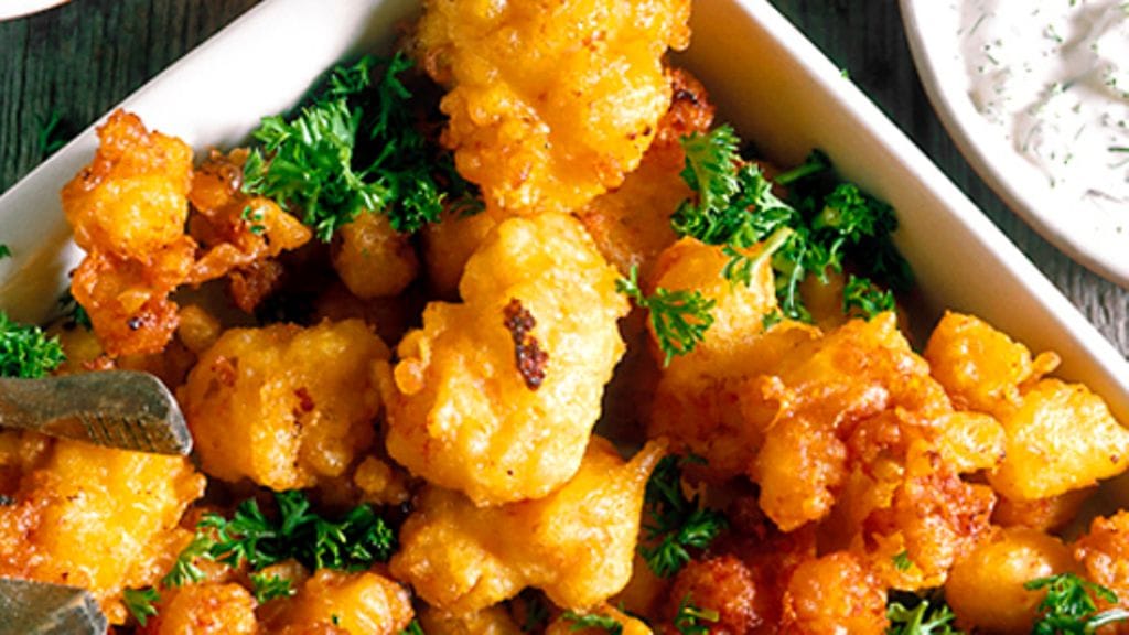 3. Kuumenna öljy. Kääntele scampit jauhoissa, kasta ne taikinaan ja friteeraa muutama kerrallaan kullanruskeiksi.