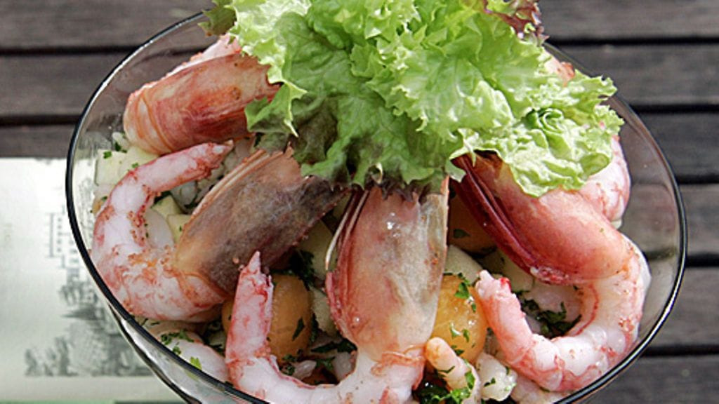 Älä kypsennä liian pitkään, muuten ravut menevät ylikypsiksi ja niistä tulee kumisia. Nosta ne reikäkauhalla pois, anna rasvan valua pois ja nosta lämpimät ravunpyrstöt salaatin pinnalle. Koristele vielä annos hienonnetulla tuoreella persiljasilpulla ja paahtuneilla chili-valkosipuli siivuilla.
