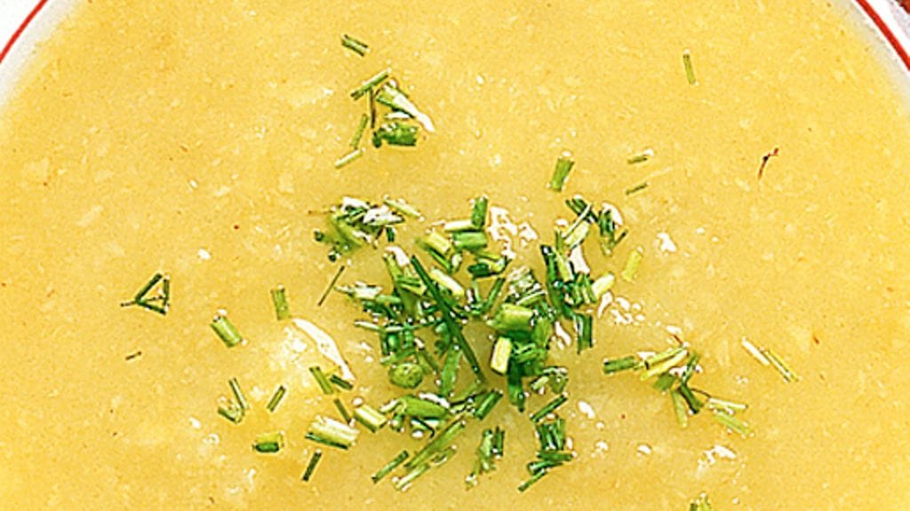 3. Hienonna ruohosipuli, säästä hieman koristeluun ja lisää suurin osa keittoon. Mausta suolalla ja pippurilla, ripottele päälle hieman ruohosipulia juuri ennen tarjoilua.
