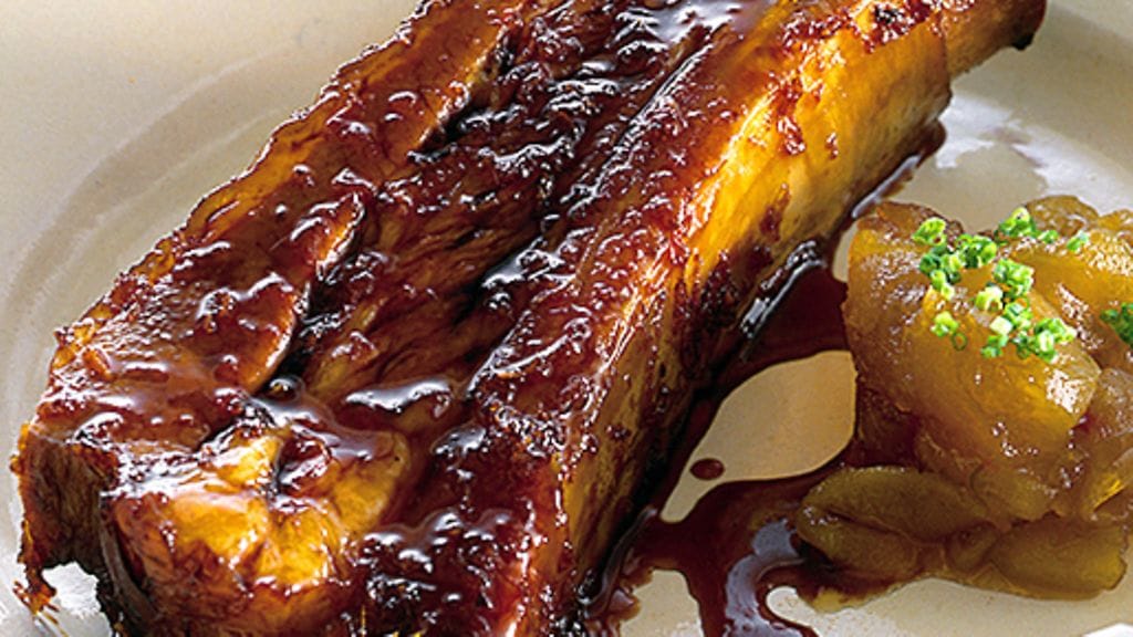 3. Sekoita hunaja, soija, sitruunamehu ja inkivääriraaste kasarissa ja kuumenna. Leikkaa liha palasiksi ja penslaa ne seoksella. Laita lihat takaisin uuniin 5 minuutiksi. Tarjoile hillotun inkiväärin kanssa.