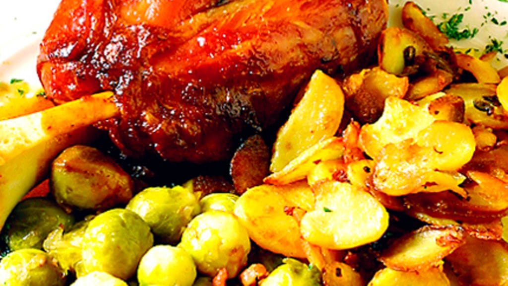 3. Puhdista ja huuhdo ruusukaalit. Ryöppää ne valkoviinissä. Lisää voi ja anna poreilla pehmeiksi. Mausta suolalla, pippurilla ja muskotilla. Tarjoile kaalit perunoiden ja sianpotkan kanssa. Ruskea kastike sopii hyvin ruoan kanssa.