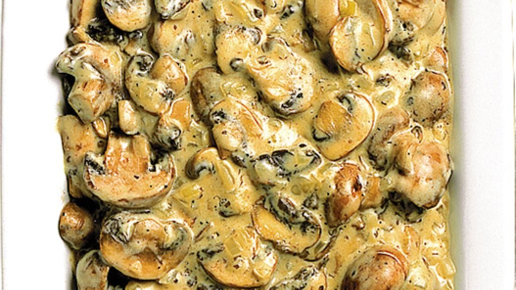 1. Huuhtele ja viipaloi sienet. Kuori ja hienonna sipuli ja ruskista se voissa. Ripottele päälle jauhot ja lisää joukkoon maito ja osa ranskankermasta.