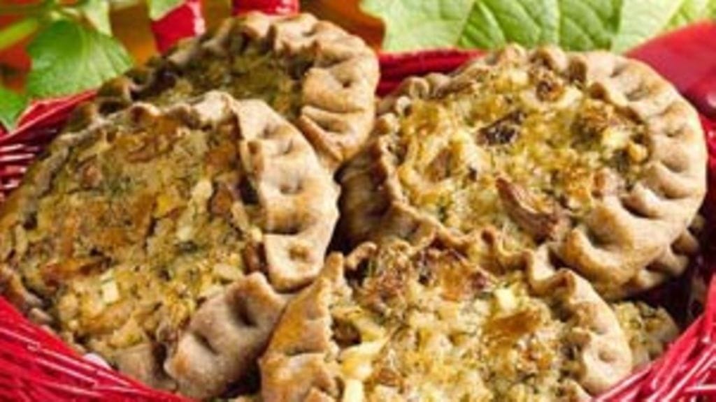 Ota taikina sulamaan ja valmista sillä aikaa täyte. Keitä 1 dl suurimoseosta (puuro tai irtonainen sopivat molemmat) lähes kypsiksi n. ½ litrassa kasvislientä. Kuullota sillä aikaa sieniä ja hienonnettua sipulia voissa kasarissa. Lisää seokseen munahakkelus ja muut täytteen ainekset ja mausta mieleiseksi. Lisää joukkoon keitetyt suurimot.