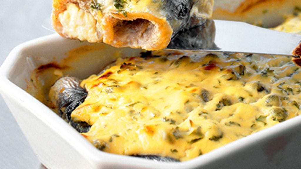 2. Sekoita yhteen ranskankerma, munankeltuaiset, sinappi, rakuuna ja kirveli. Levitä seos silakkarullien päälle ja nosta vuoka uuniin.