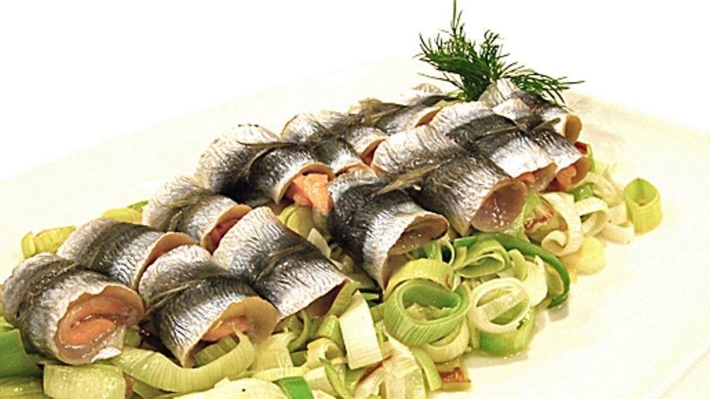 Nosta silakkarullat purjohaudukkeen päälle ja kypsennä ruokaa 200 asteisessa uunissa 20 minuuttia. Tarjoa keitettyjen perunoiden kanssa.