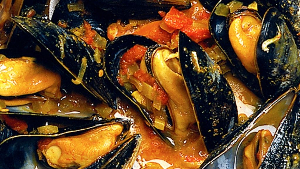 1. Harjaa simpukat huolellisesti ja huuhdo ne. Heitä pois simpukat jotka eivät sulkeudu, kun kuorta napautetaan kevyesti pöytää vasten. Kuori ja hienonna sipuli sekä valkosipulinkynnet. Leikkaa selleri pieniksi. Kalttaa, kuori ja kuutioi tomaatit.