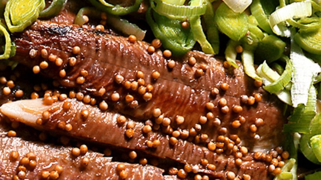 1. Perkaa savusilakat ja vedä nahat pois. Laita fileet pienelle vadille ja peitä ne suikaloidulla purjolla. Ripottele päälle sinapinsiemenet.
