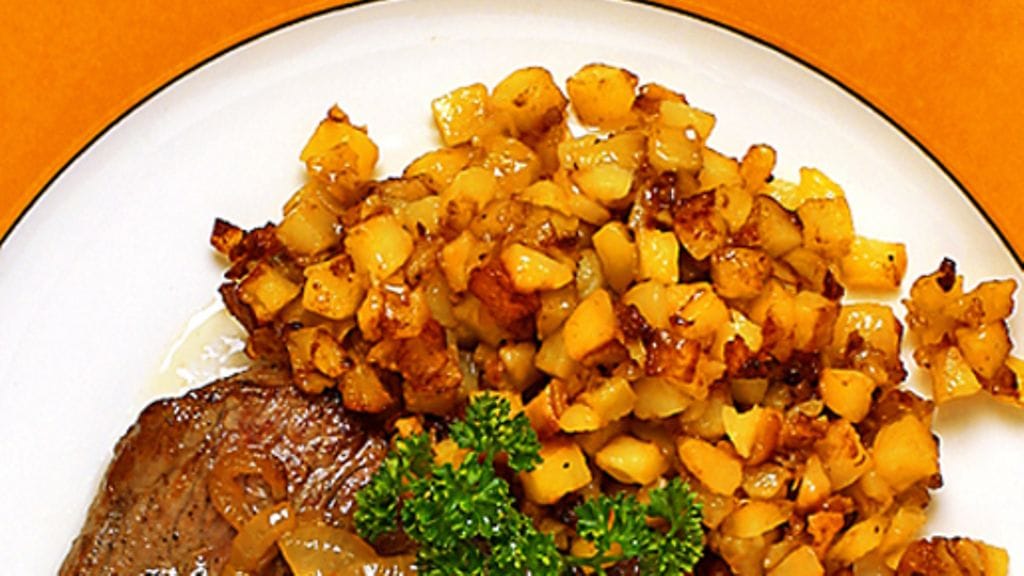 3. Ruskista vielä 1 rkl voita keskilämmöllä kullanruskeaksi. Lisää sipulit ja anna niiden lämmetä kokonaan. Lisää liemi ja anna kiehua pieni hetki. Kaada sipuliliemi pihvien päälle. Tarjoile paistettujen perunoiden kanssa.