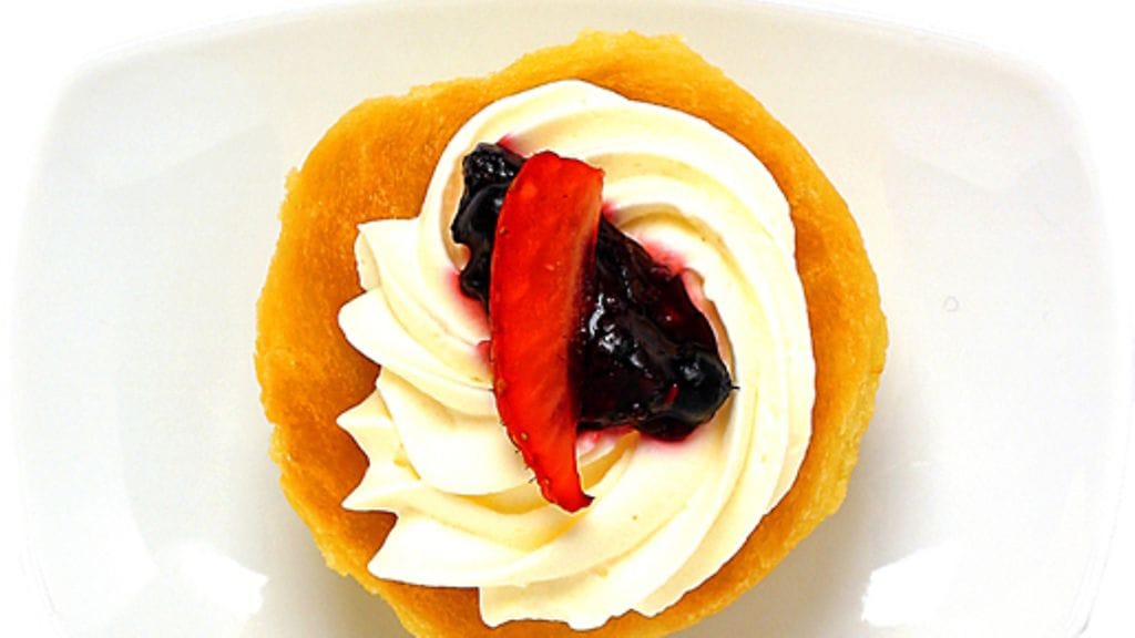 2. Täytä vuoat 1/3 korkeudelta taikinalla ja anna kohota, kunnes taikina täyttää vuoat. Paista n. 15 minuuttia, savariinien on oltava kuivia ja kullanruskeita. Anna jäähtyä.