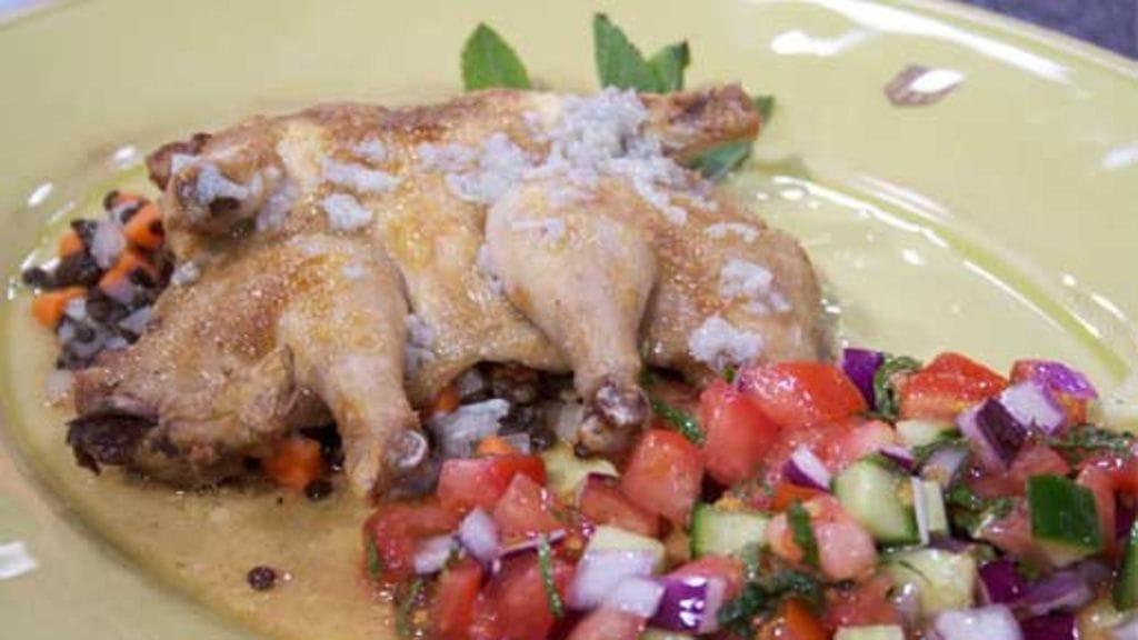 Irrota luut kananpojan rinnasta. Leikkaa selkäpuoli auki. Anna kananpojan marinoitua muutama tunti tai yön yli.