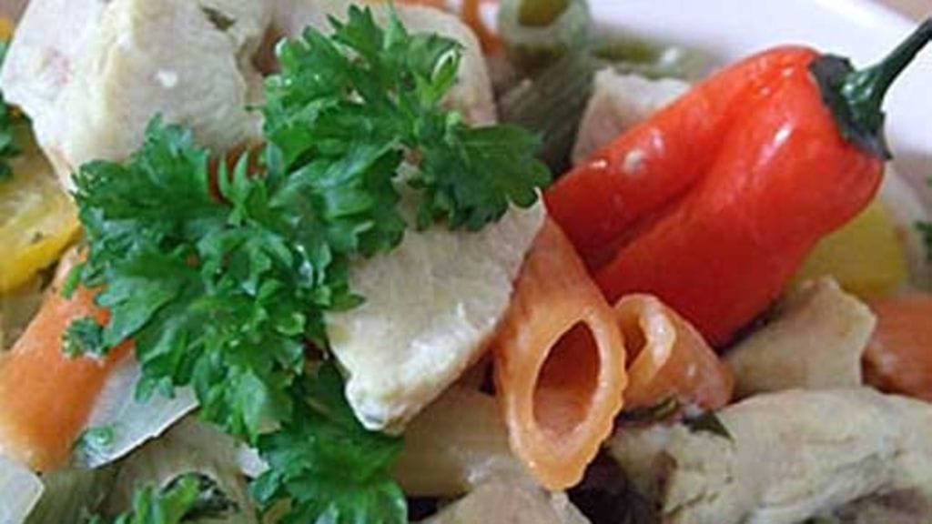 Kypsennä fileesuikaleet pannulla ja lisää mukaan pilkottu sipuli ja paprika ja halkaistu tuore chili. Purista päälle vielä sitruunamehua ja kaada kookosmaito mukaan.