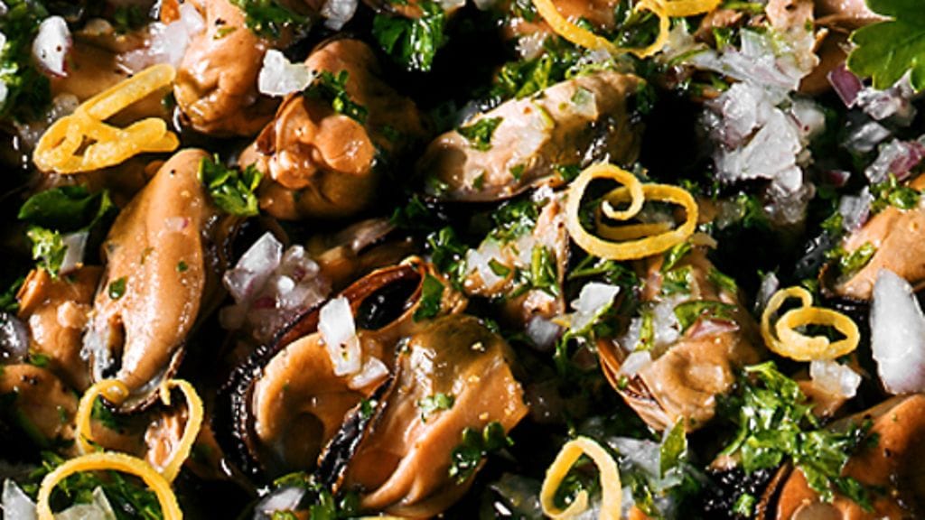 1. Valuta simpukat ja laita ne syvälle vadille. Sekoita marinadin ainekset ja kaada simpukoiden päälle. Anna niiden vetäytyä marinadissa muutama tunti.