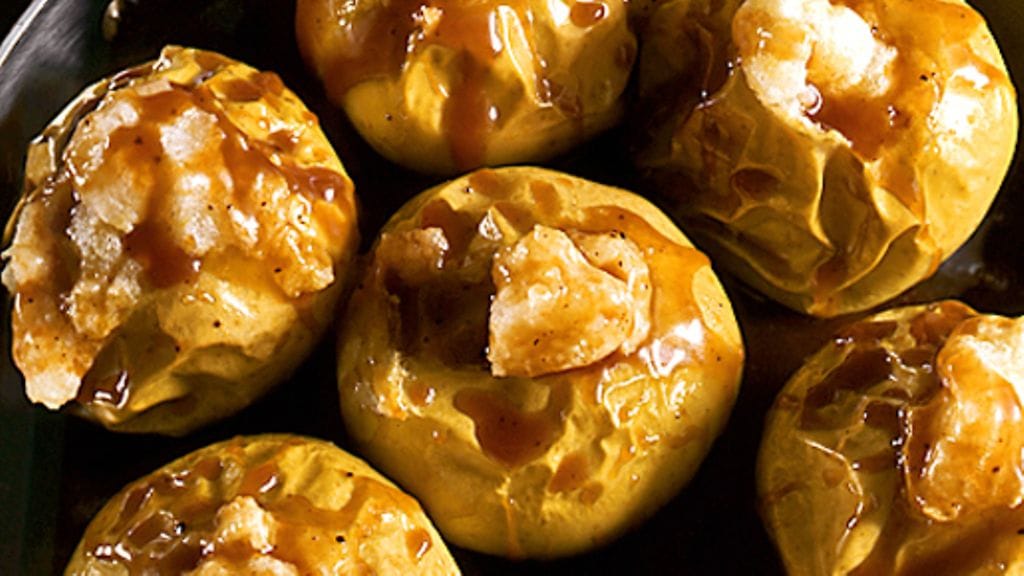 3. Sekoita kastikkeen ainekset kattilassa ja keitä hiljalleen ilman kantta kunnes kastike sakenee. Kaada kastike omenoille niiden tullessa uunista, tarjoile lämpimänä.