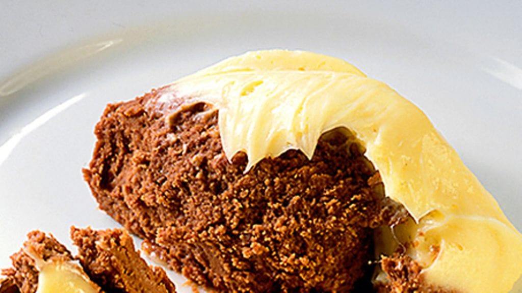 Vatkaa voimakkaasti ja anna seoksen kypsyä, mutta ei kiehua, kunnes se on paksuuntunut. Vatkaa voimakkaasti koko ajan. Kun seos on paksua, anna sen jäähtyä hieman. Lisää sitten kylmä voi vähän kerrallaan ja vatkaa tasaiseksi massaksi. Anna jäähtyä kokonaan ja jähmettyä jääkaapissa.
